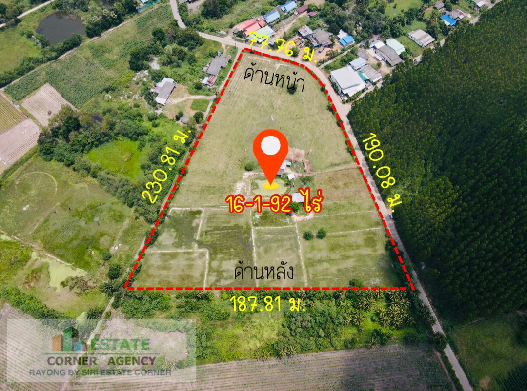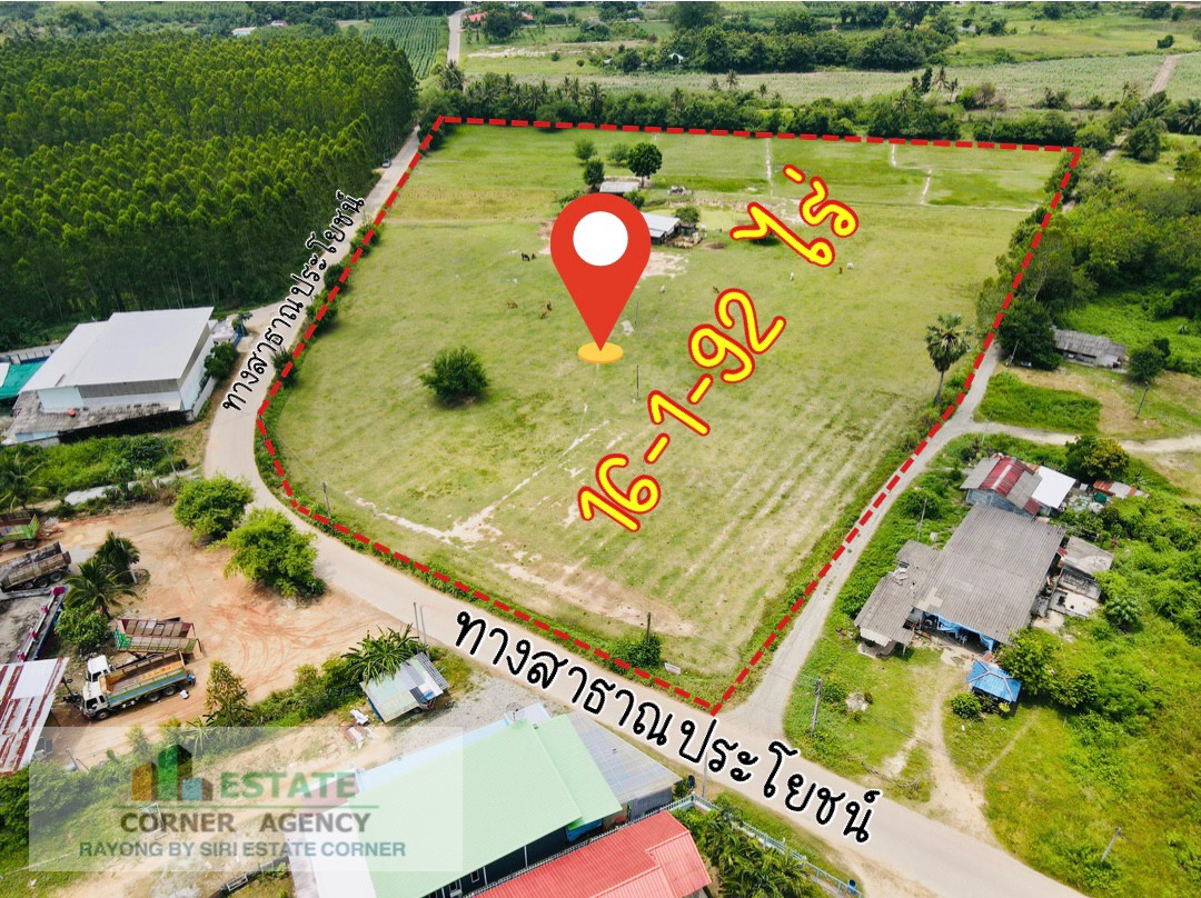 - ที่ดินเปล่าเนื้อที่ 16-1-92 ไร่ (2 โฉนด) แปลงที่ดินติดถนนคอนกรีต ทั้ง 3 ด้าน