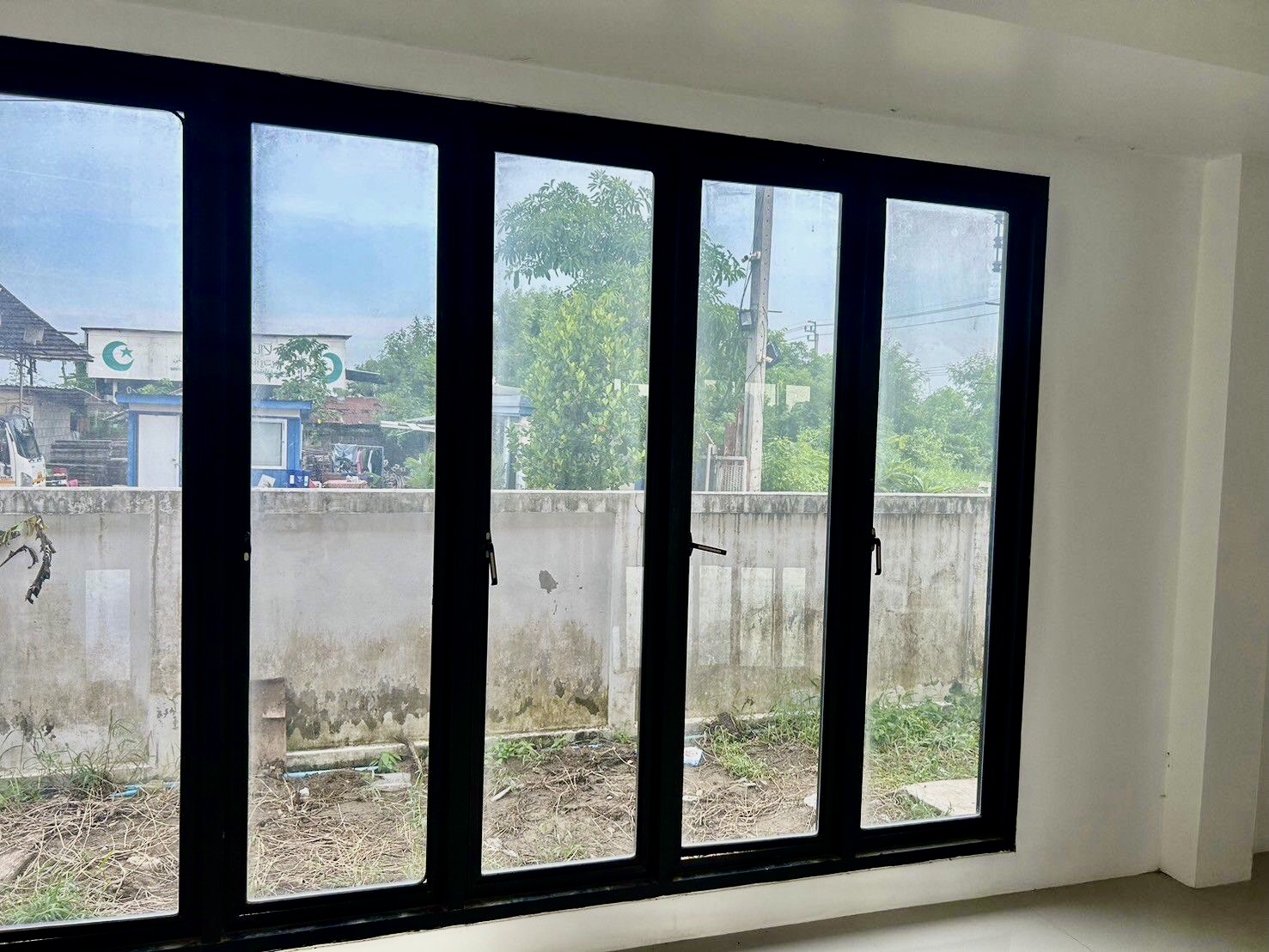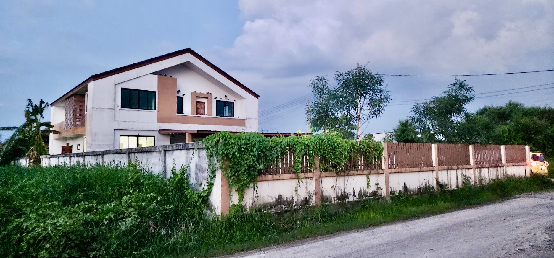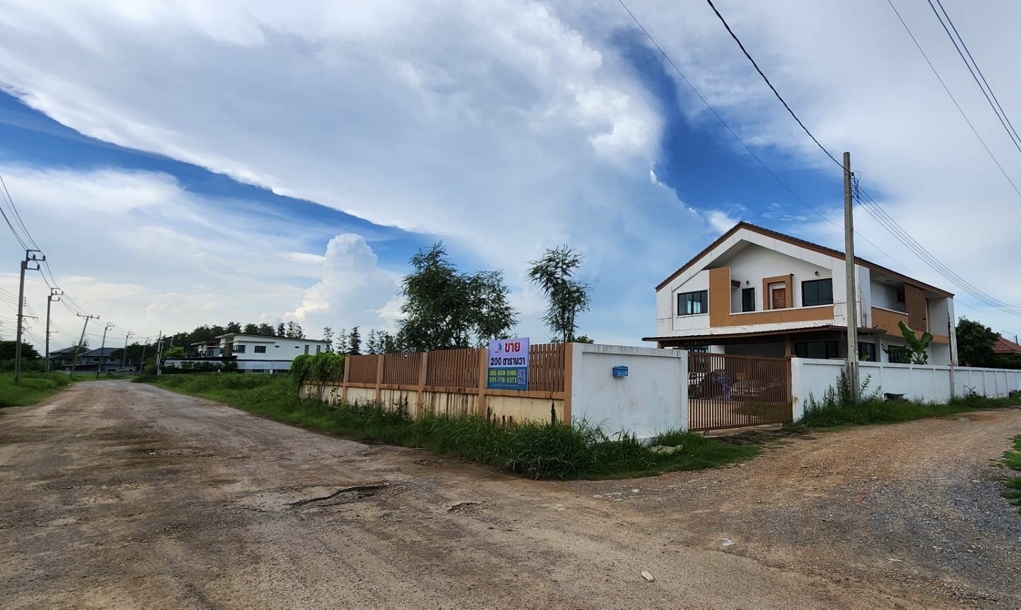 มีรั้วคอนกรีตล้อมรอบแปลงที่ดิน ถนนเมนกว้างขวาง