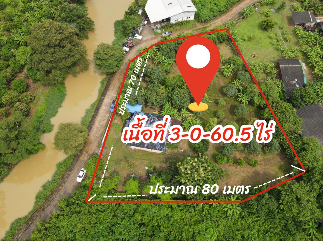 - ที่ดินพร้อมสิ่งปลูกสร้างบ้านเดี่ยว 1 หลัง บนเนื้อที่ 3 ไร่ 60.5 ตารางวา