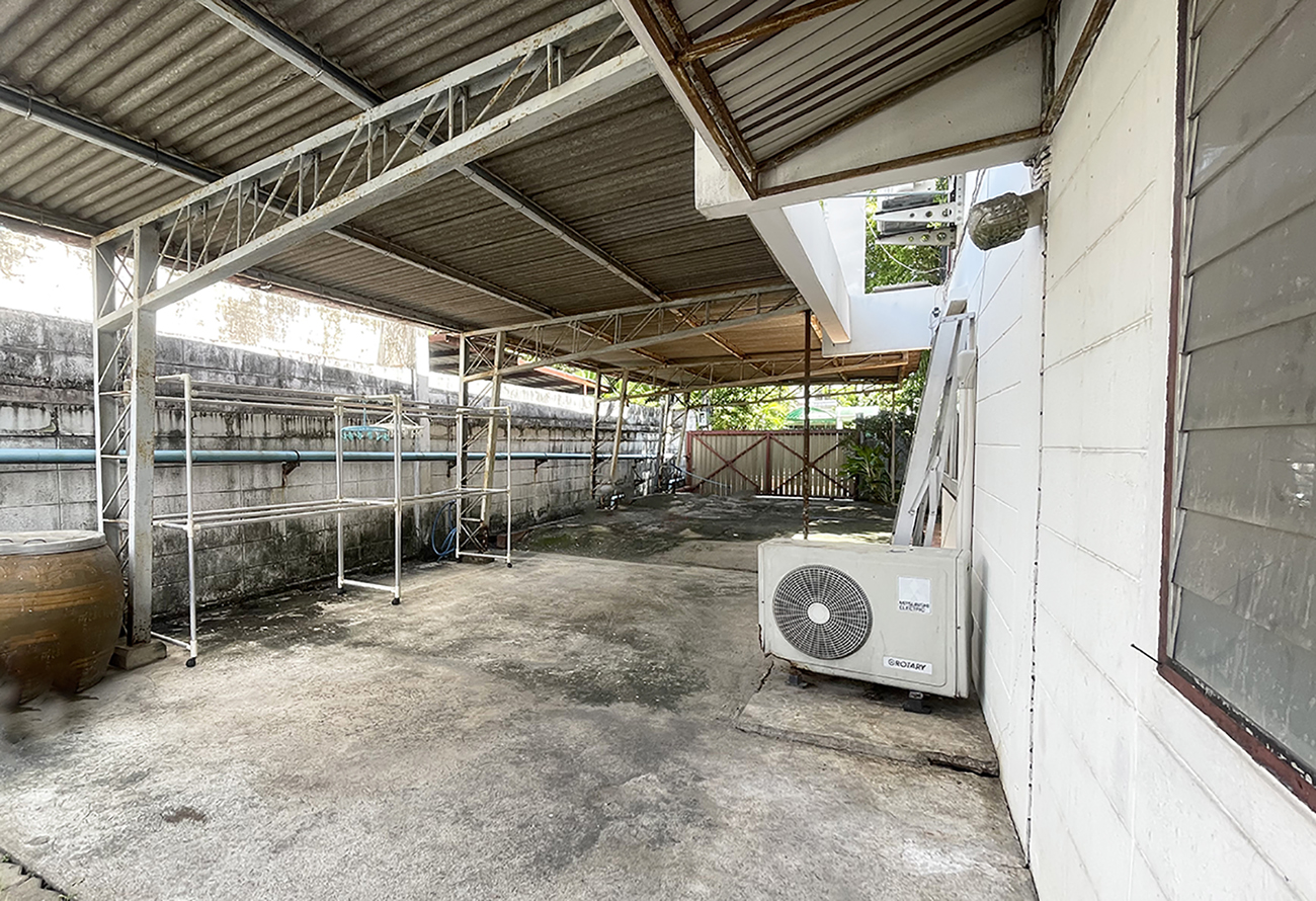 - Very spacious frontage, 30 meters wide, with a steel gate for two entrances and parking. 4-5 cars