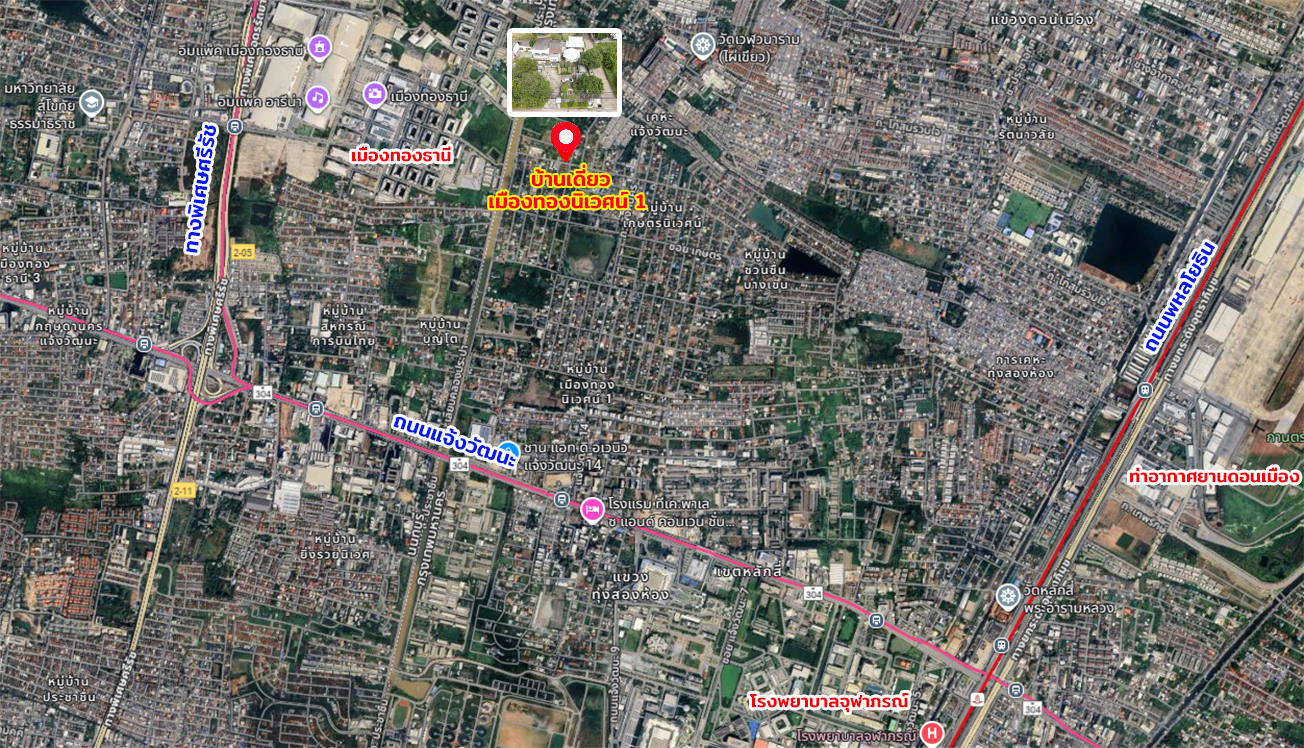 Nearby: Lak Si Government Complex, Big C, Lotus, Makro Chaeng Watthana, Impact Muang Thong Thani, Don Mueang Airport, and Mongkutwattana Hospital.