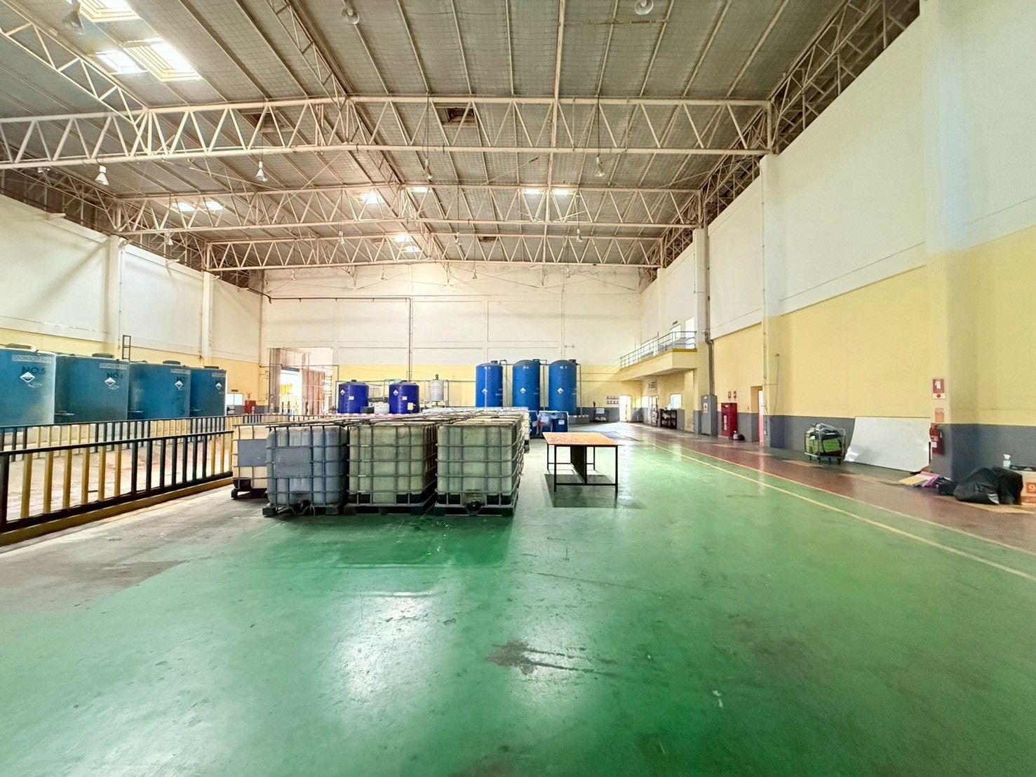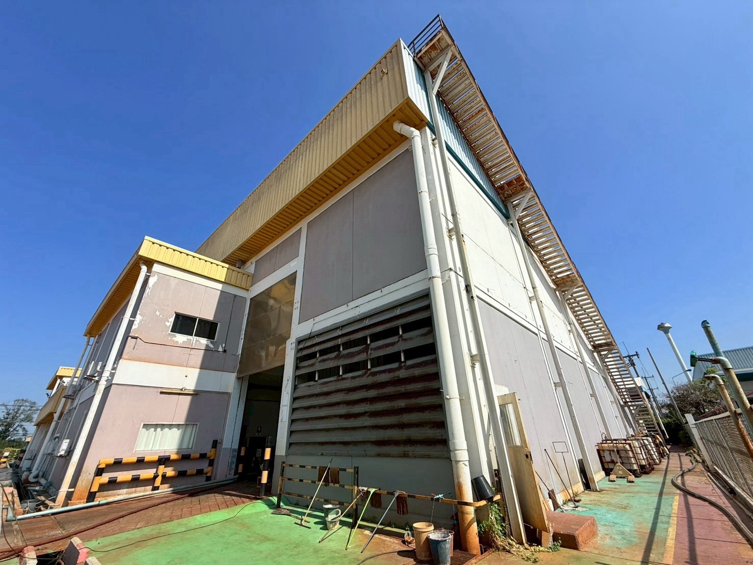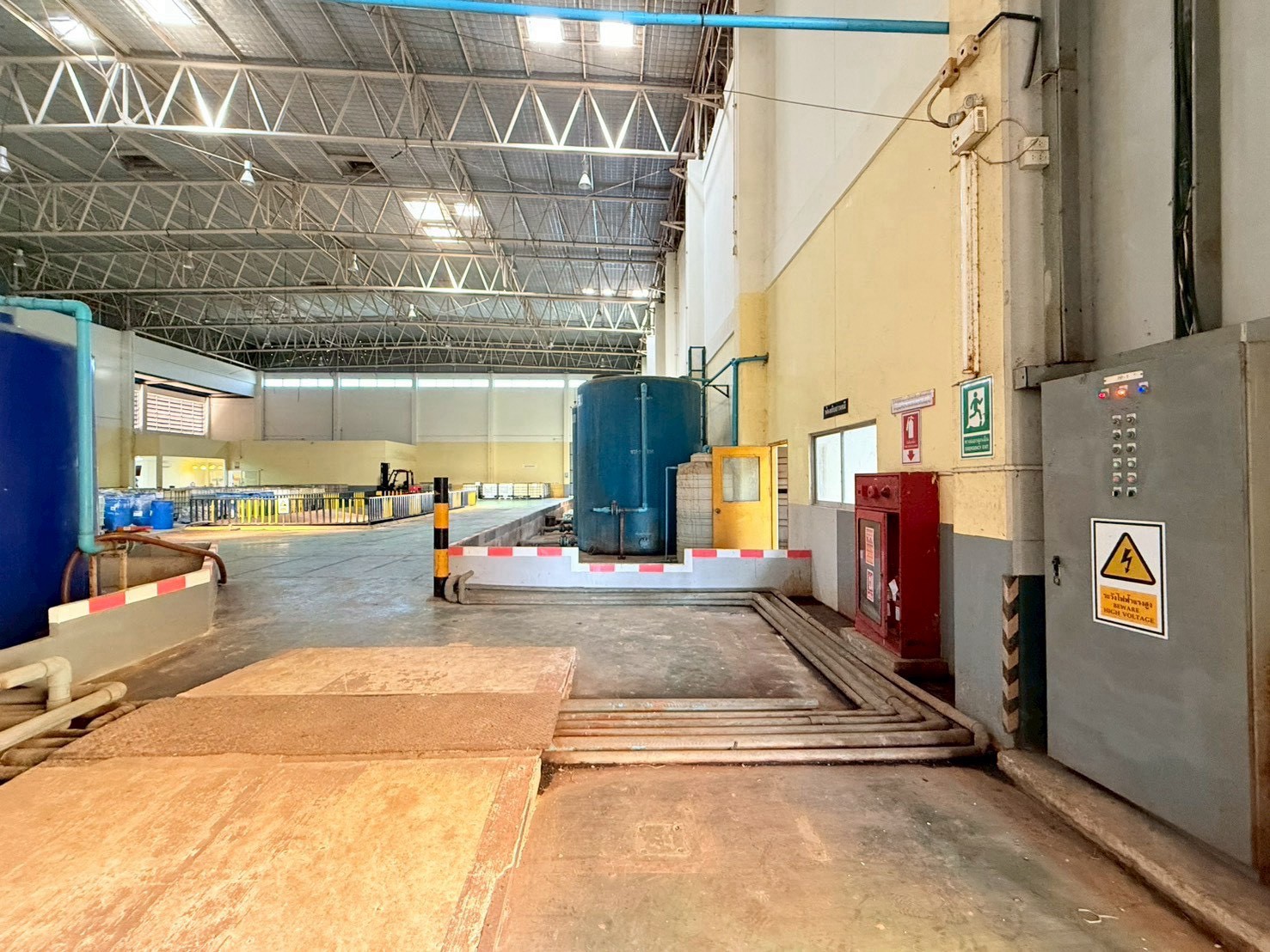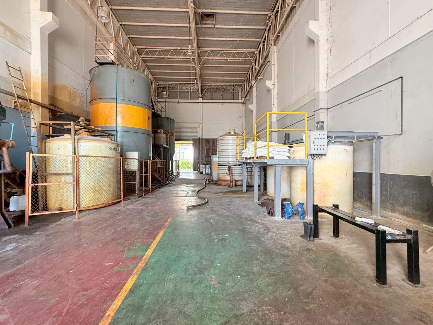 • อาคารโรงงานสูงโปร่ง พื้นที่เก็บถังบำบัด เครื่องจักร และไลน์การผลิตพร้อมใช้งาน