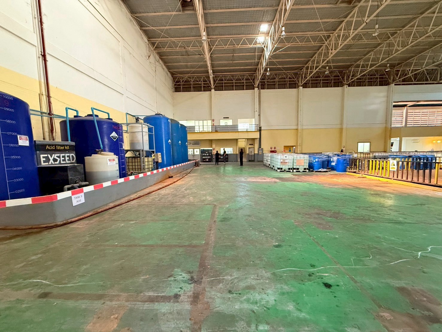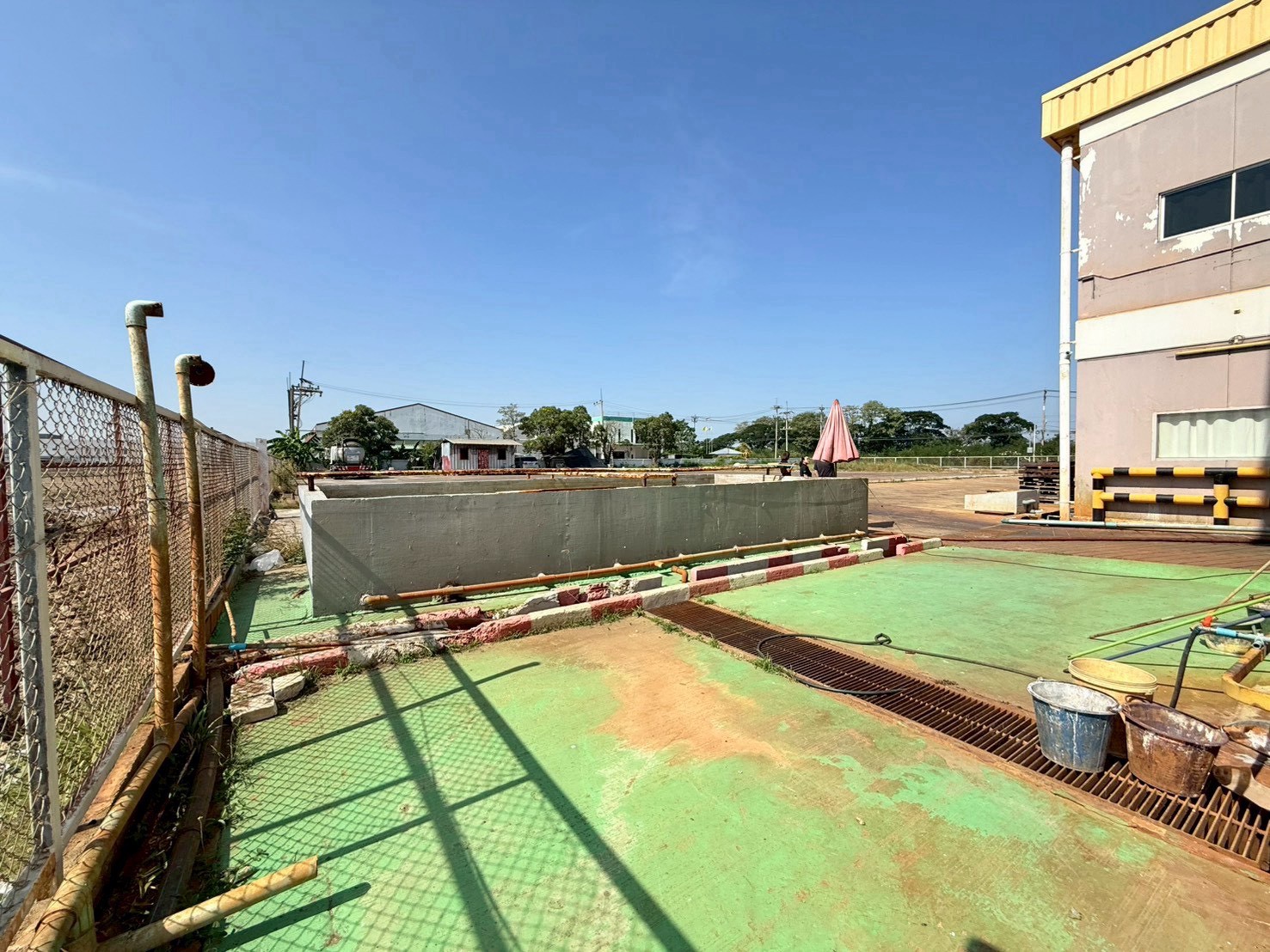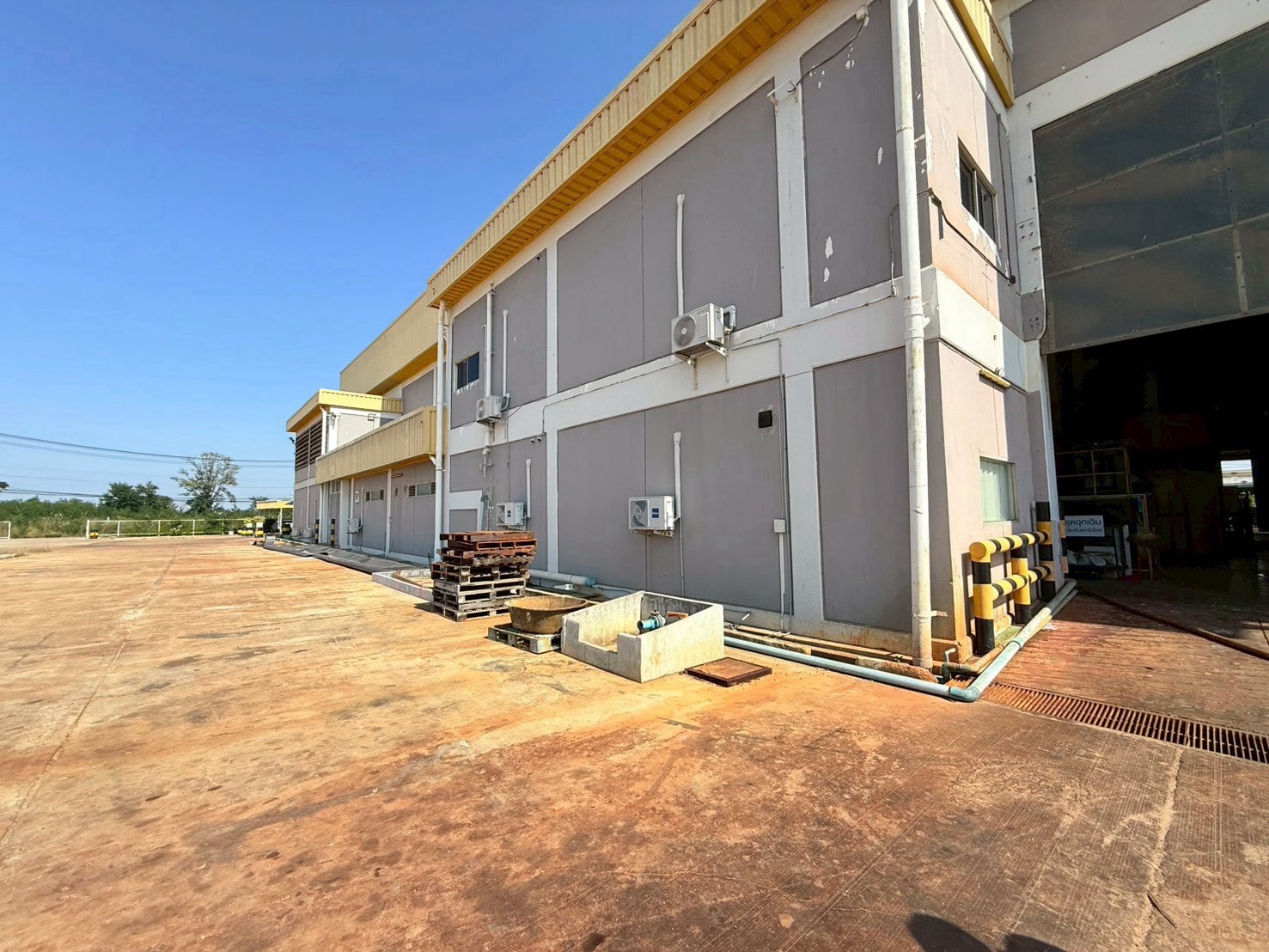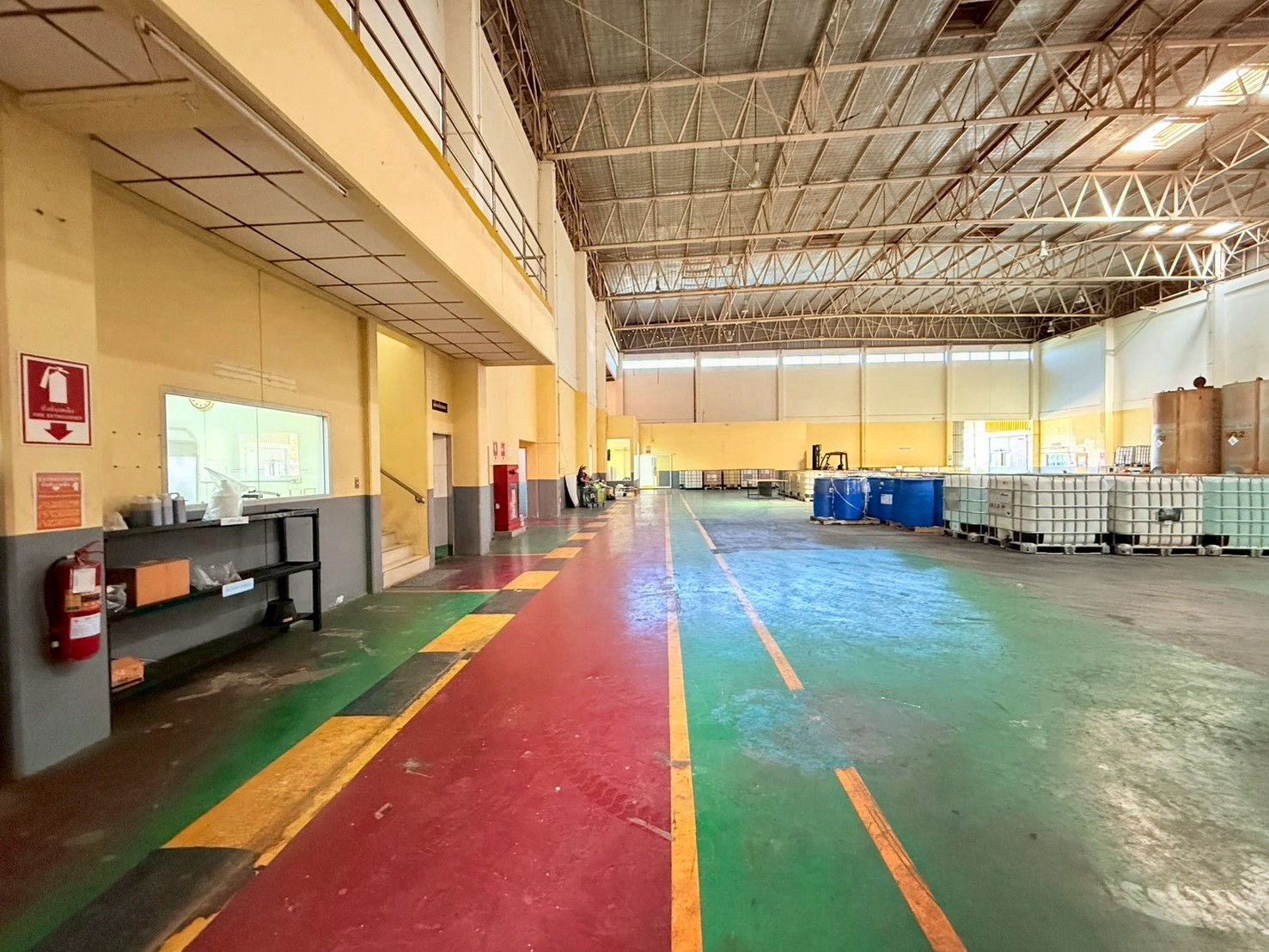 • อาคารโรงงานสูงโปร่ง พื้นที่เก็บถังบำบัด เครื่องจักร และไลน์การผลิตพร้อมใช้งาน