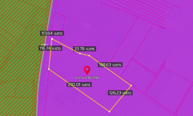 - เป็นที่ดินถมแล้ว หน้ากว้างประมาณ 118 เมตร ความลึก ประมาณ 300 เมตร
