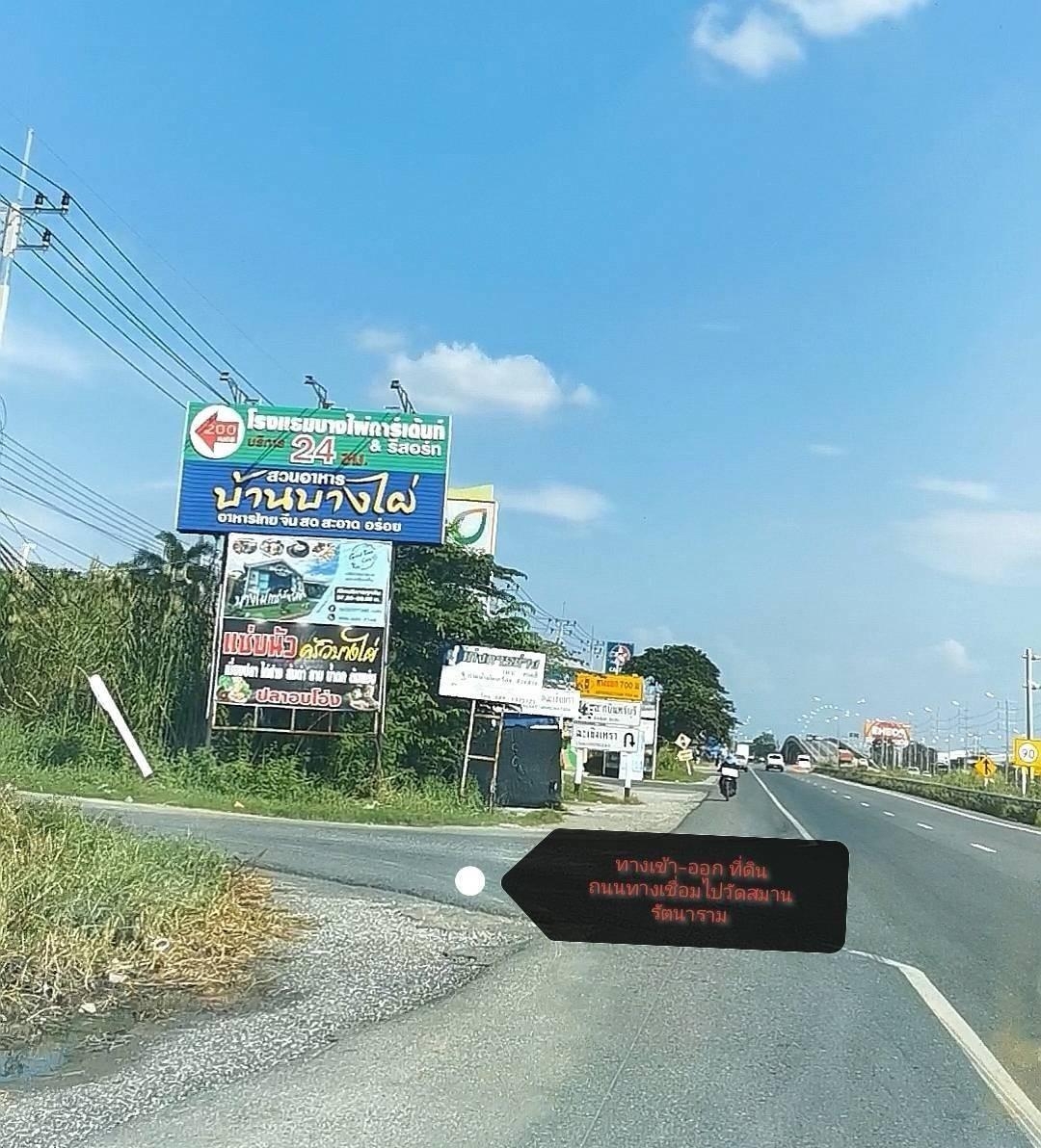 อยู่ซอยเดียวกับสวนอาหารบ้านบางไผ่ ที่ดินติดถนนลาดยางเลียบคลองจุกกระเฌอ
