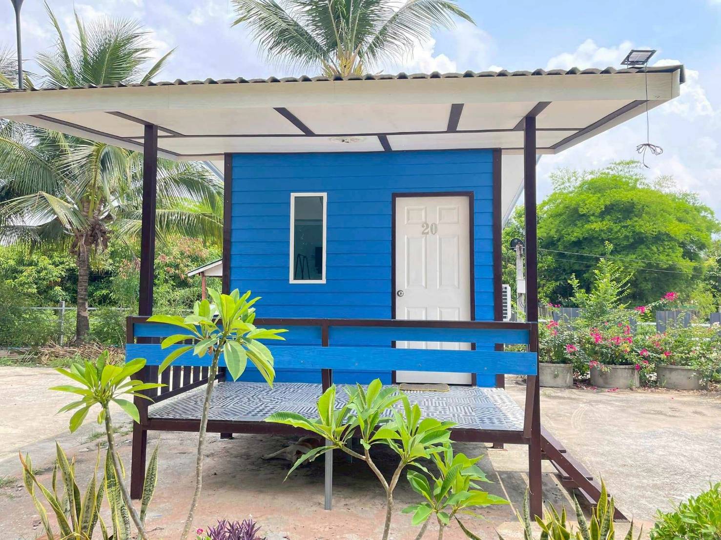 The resort offers a peaceful atmosphere with beautifully landscaped gardens and a clearly visible landmark sign (as shown in photos).