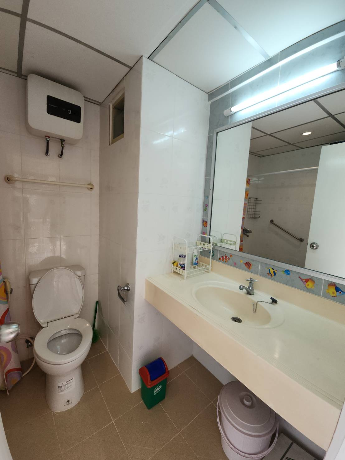 -ห้องพึ่งรีโนเวทใหม่ พื้นภายในห้อง พื้นห้องน้ำ ฝ้า เพดาน ผนังห้อง และปูกระเบื้องใหม่