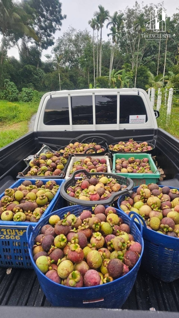 • แซมด้วย มังคุด (กว่า 40 ต้น), กล้วยหอมทองพันธุ์ส่ง 7-11, ใบเหลียง