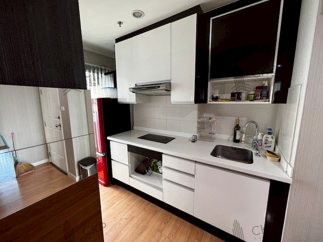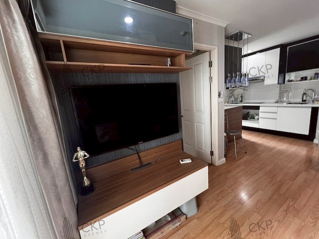 - With TV, sofa, built-in kitchen, bed + mattress, built-in storage, Thai wallpaper