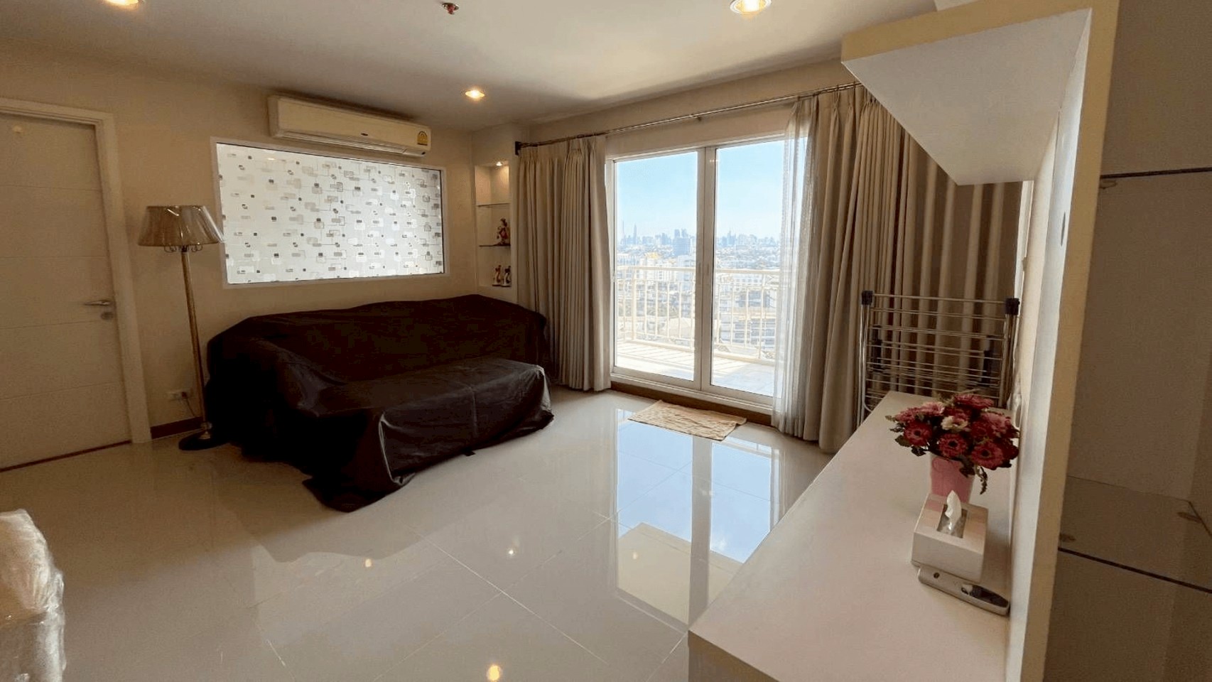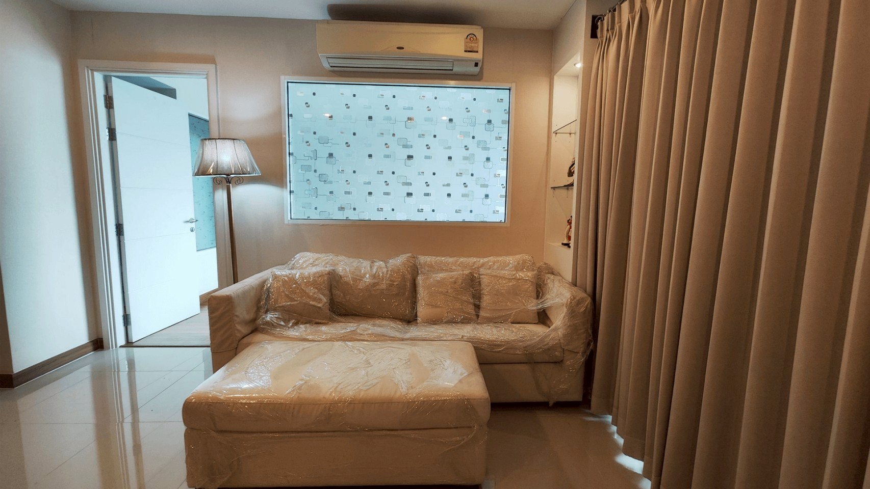 - ห้องนั่งเล่น แถม ชุดโซฟา และโคมไฟตั้งพื้น