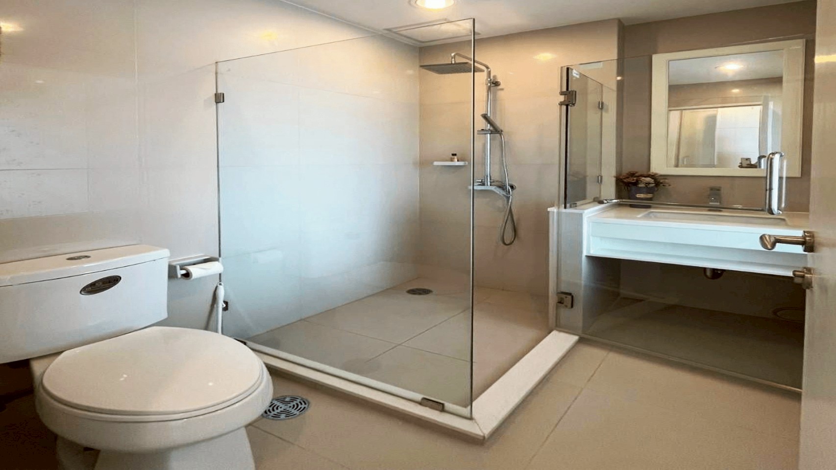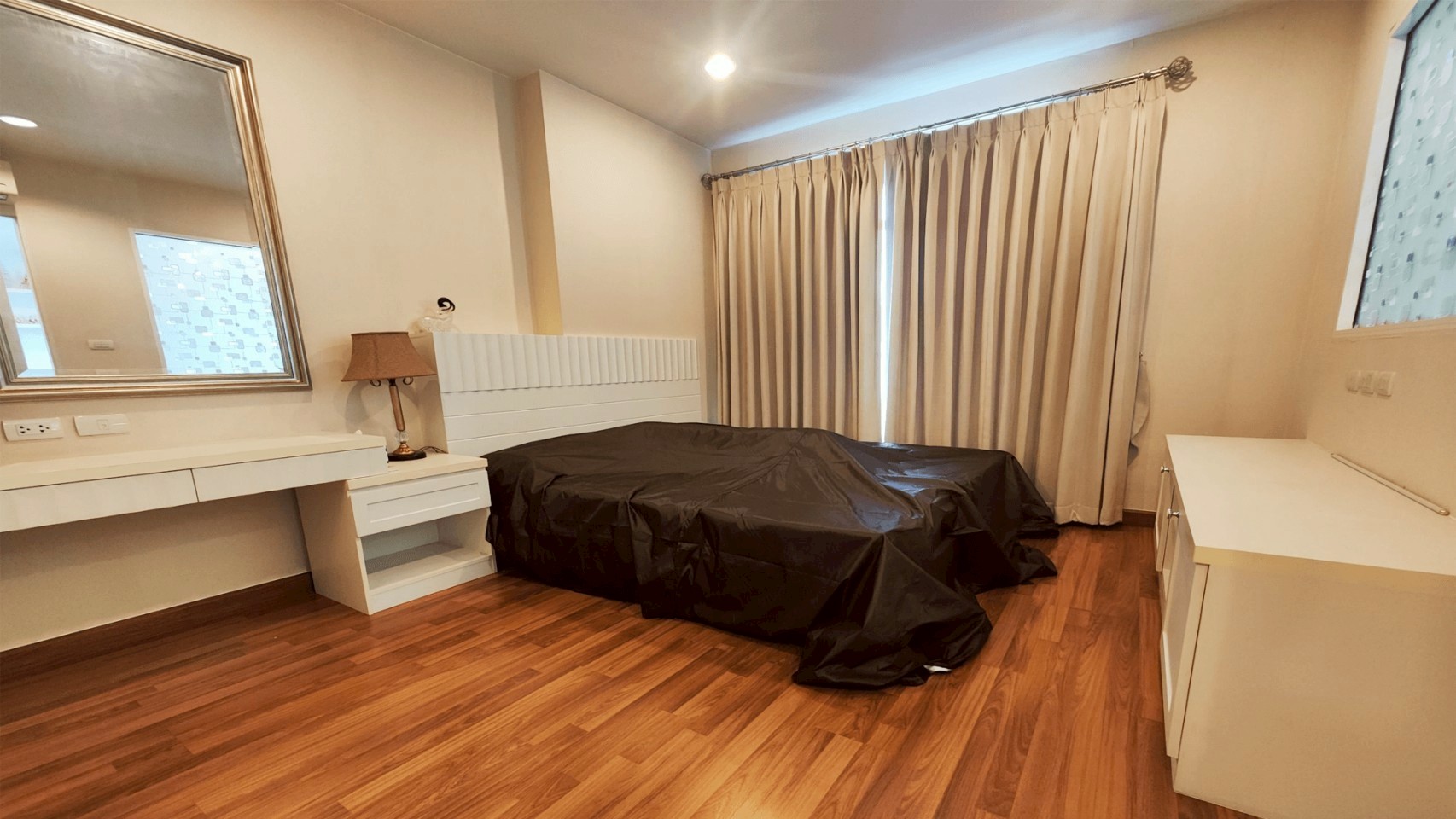 - 1ห้องนอน แถมเตียง 1หลัง 1ห้องน้ำ 1 แบบกระจกกั้นโซนเปียกแห้ง