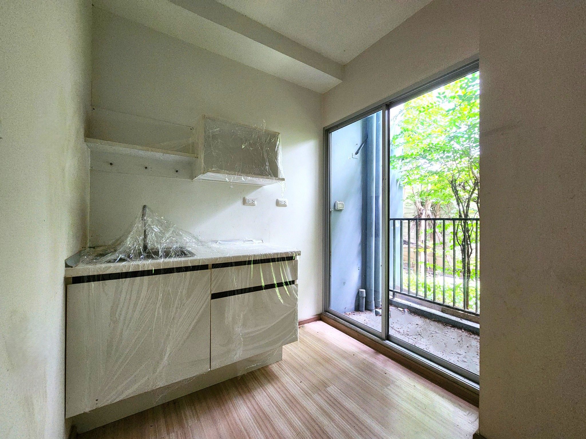 • 1 ห้องนอน 1 ห้องน้ำ ห้องอเนกประสงค์ ห้องเตรียมอาหาร และระเบียง
