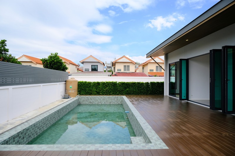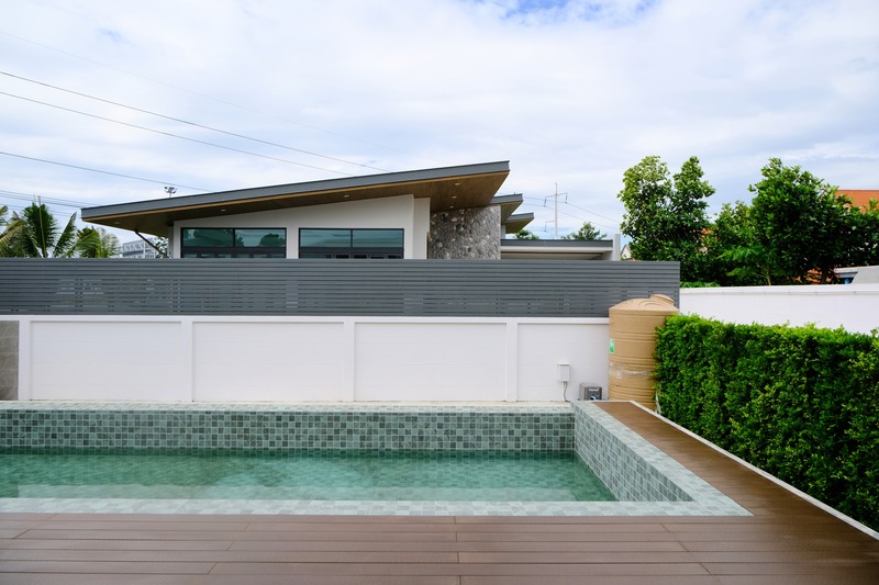 5 สระว่ายน้ำระบบเกลือ ขนาด 4.00 x 10.00 เมตร พร้อมลานระแนงไม้รอบสระว่ายน้ำ