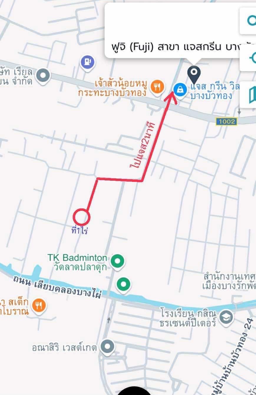 ที่ดินขนาด 1 ไร่ (ประมาณ 1,600 ตร.วา) ในโซนบางไผ่ บางบัวทอง เดินทางสะดวก ใกล้ชุมชนและสิ่งอำนวยความสะดวกครบครัน
