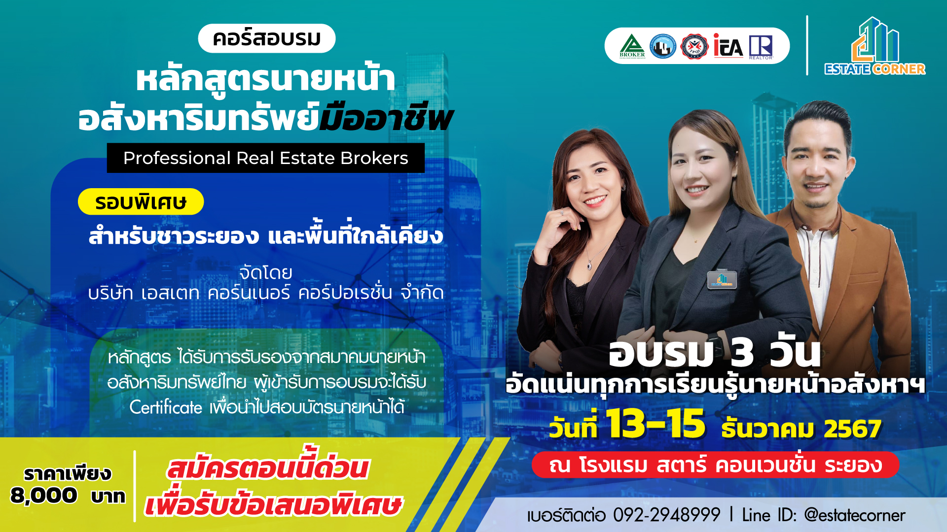 เปิดแล้ว เรียนหลักสูตร นายหน้าอสังหาฯ แบบมืออาชีพ (รอบพิเศษ วันที่ 13-15 ธันวาคม 2567)