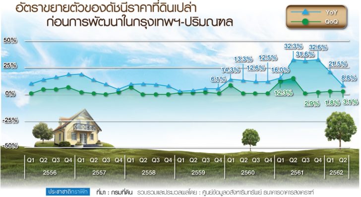 LTV Effect ดัชนีราคาที่ดินเปล่า Q2/62 โตเหลือ 1 ดิจิต ชะลอตัวชัดเจนหลังจาก 9 ไตรมาสโตติดต่อกัน 2 ดิจิต