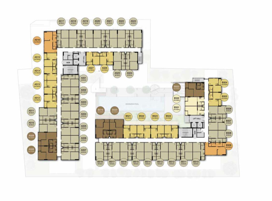 * 1 Bedroom Type A2 23.5 ตร.ม. จำนวน 10 ยูนิต