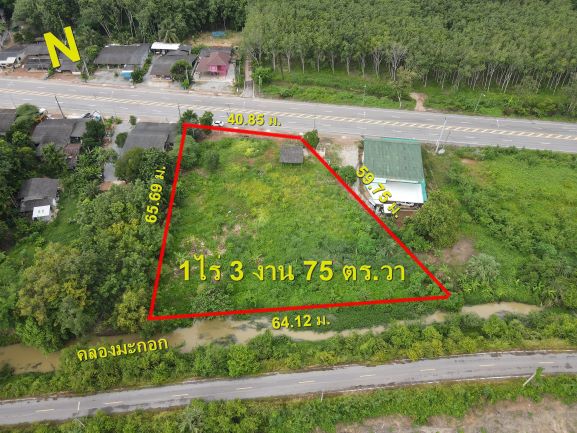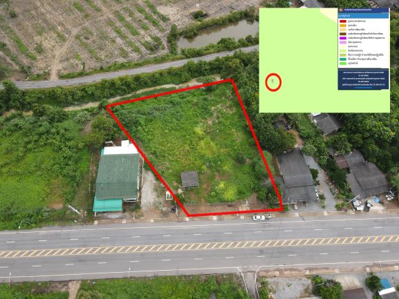 ที่ดิน 1 ไร่ 3 งาน 75 ตร.ว รูปสี่เหลี่ยมด้านไม่เท่า ผังเมืองสีเขียวอ่อน
