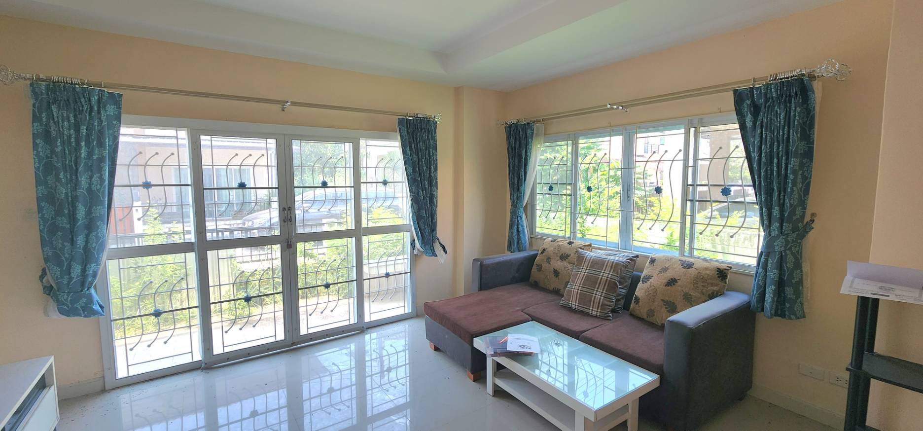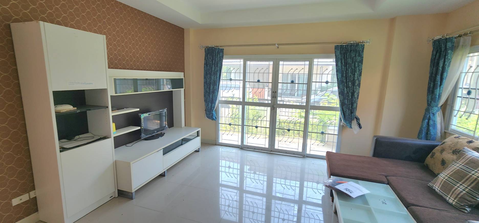 พร้อมเฟอร์นิเจอร์ มี โซฟา ชั้นวางทีวี เตียงนอน ตู้เสื้อผ้า