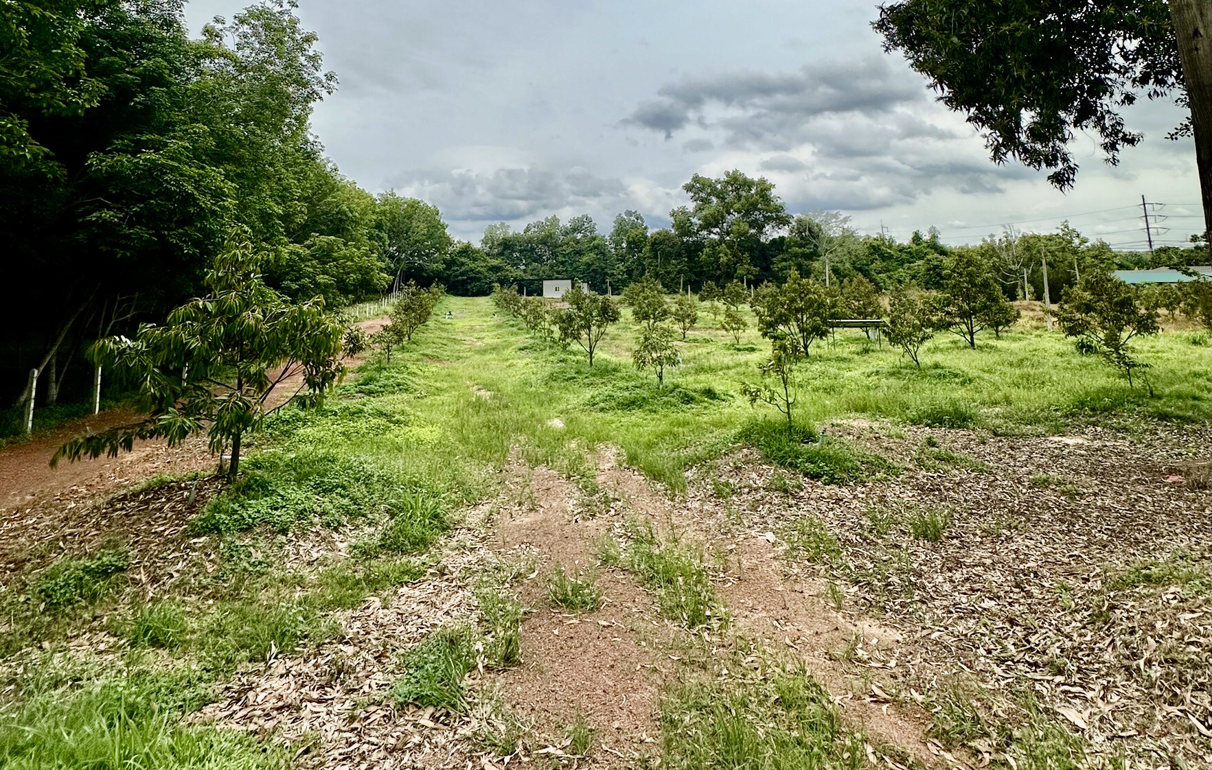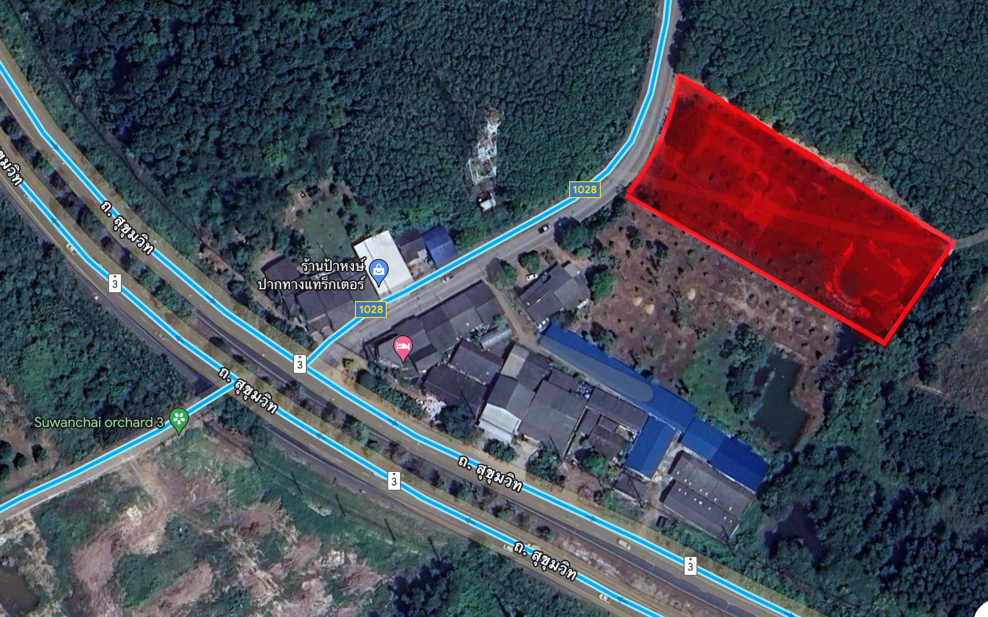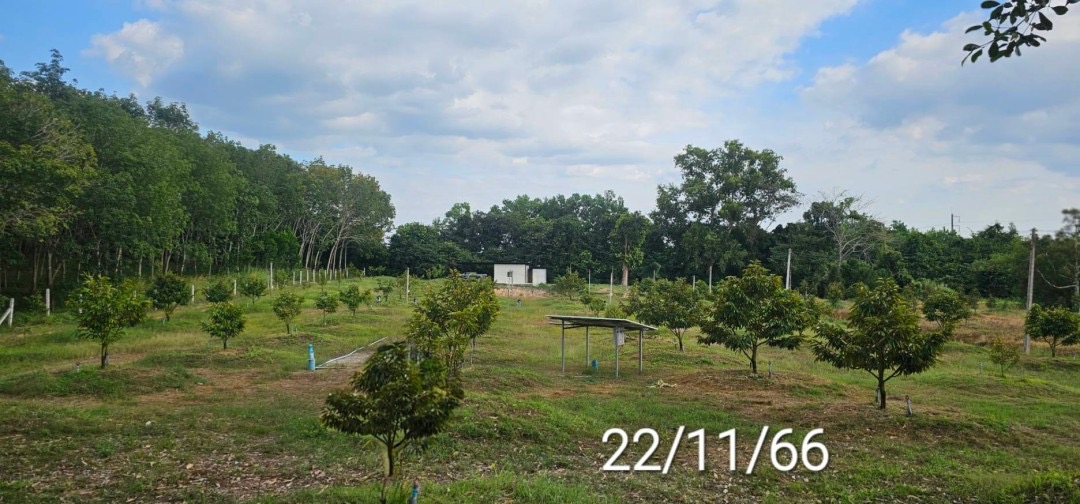 ที่ดิน เนื้อที่ 4 ไร่ ติดถนนลาดยาง ใกล้ถนนสุขุมวิท 30 เมตร ปัจจุบันมีทุเรียน 80 ต้น ปีหน้าเริ่มให้ผลผลิต ที่ดิน เป็นนส3 ก. ทำเรื่องขอโฉนดไปแล้ว ซื้อตอนนี้ เปลี่ยนชื่อได้เลย มีบ้านพักคนงาน สระน้ำรูปหัวใจ