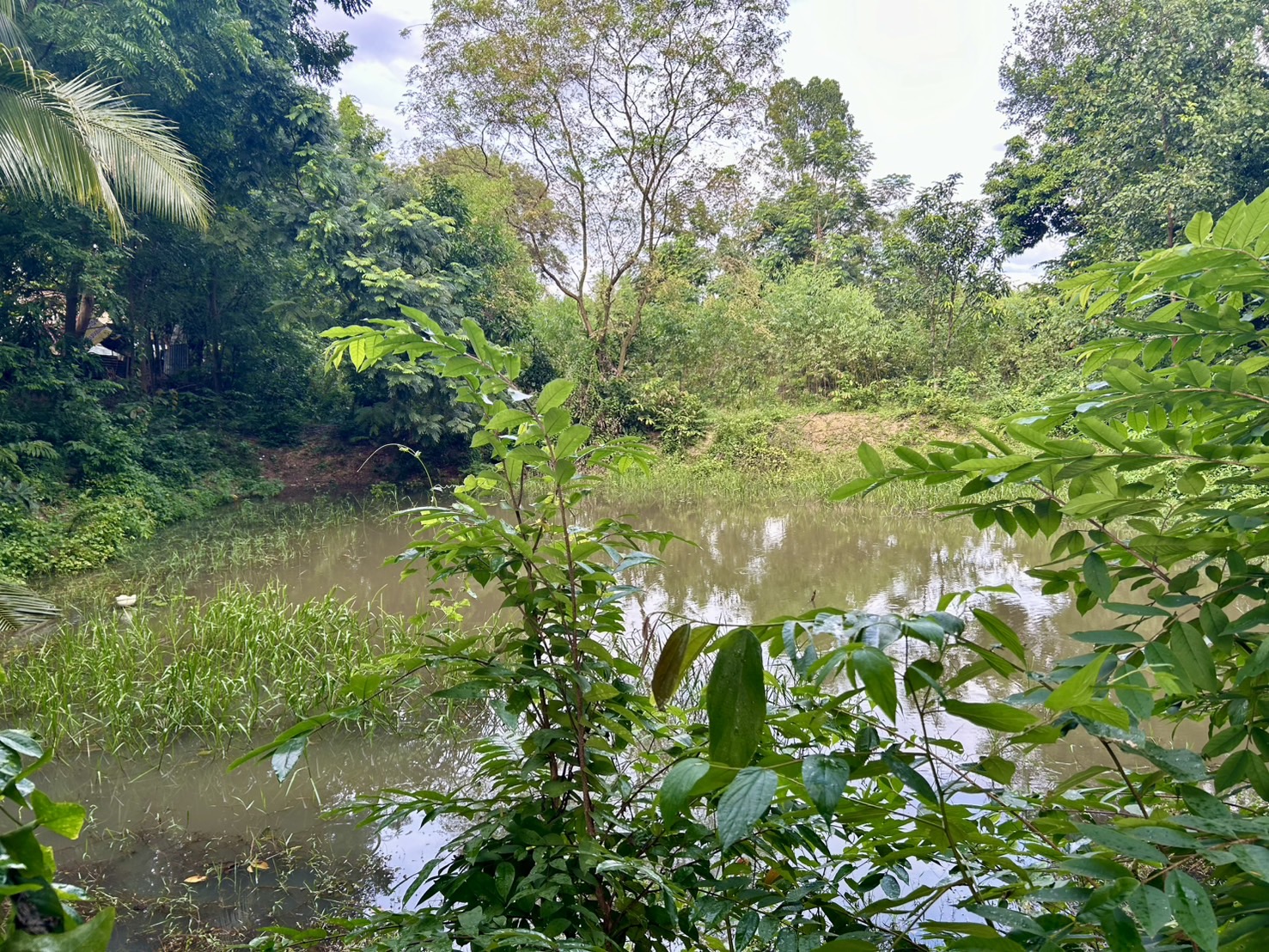 สระน้ำ บ่อน้ำใช้ มีไม้ยืนต้น ร่มรื่น