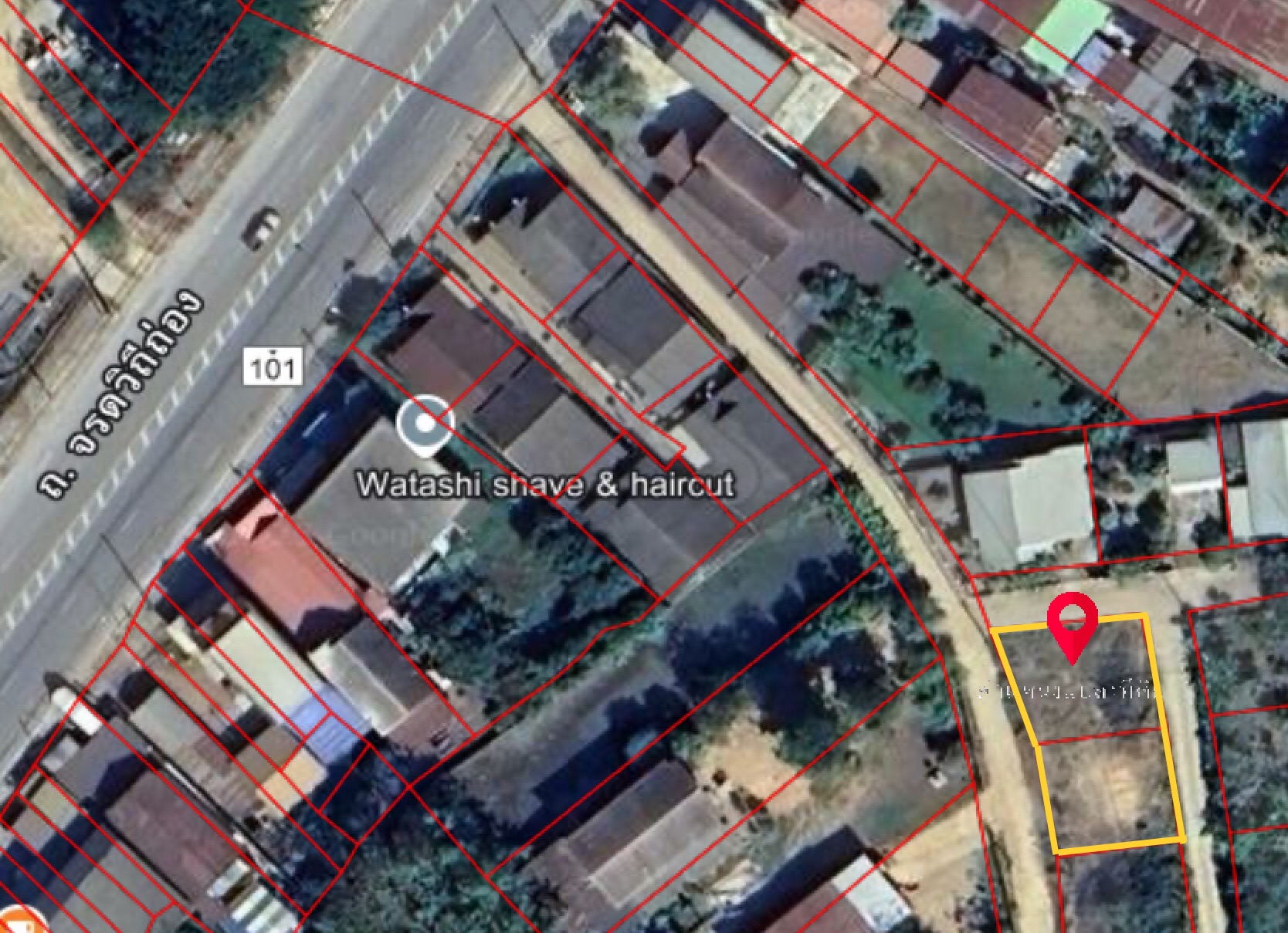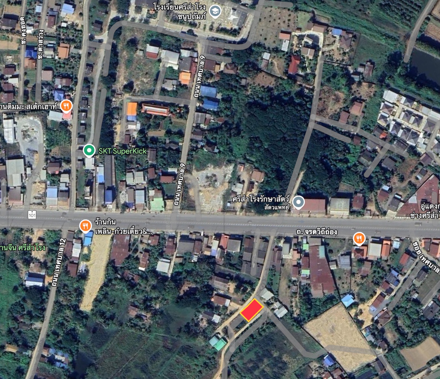 ที่ดิน 114.7 ตร.ว. ติดถนนสาธารณะ 3 ด้าน ทำเลทองใจกลางศรีสำโรง ใกล้ถนนใหญ่เพียง 60 ม.