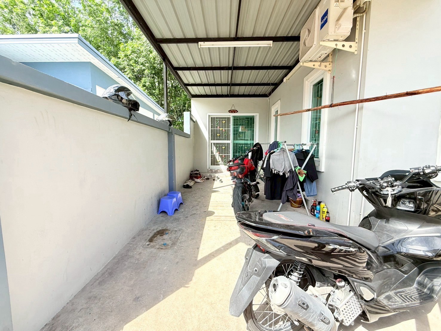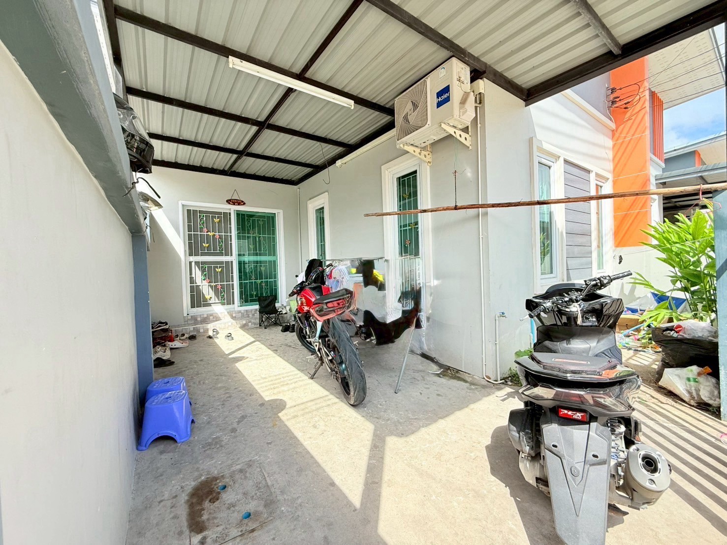 - บริเวณหน้าบ้านต่อเติมโรงจอดรถพร้อมปูกระเบื้อง