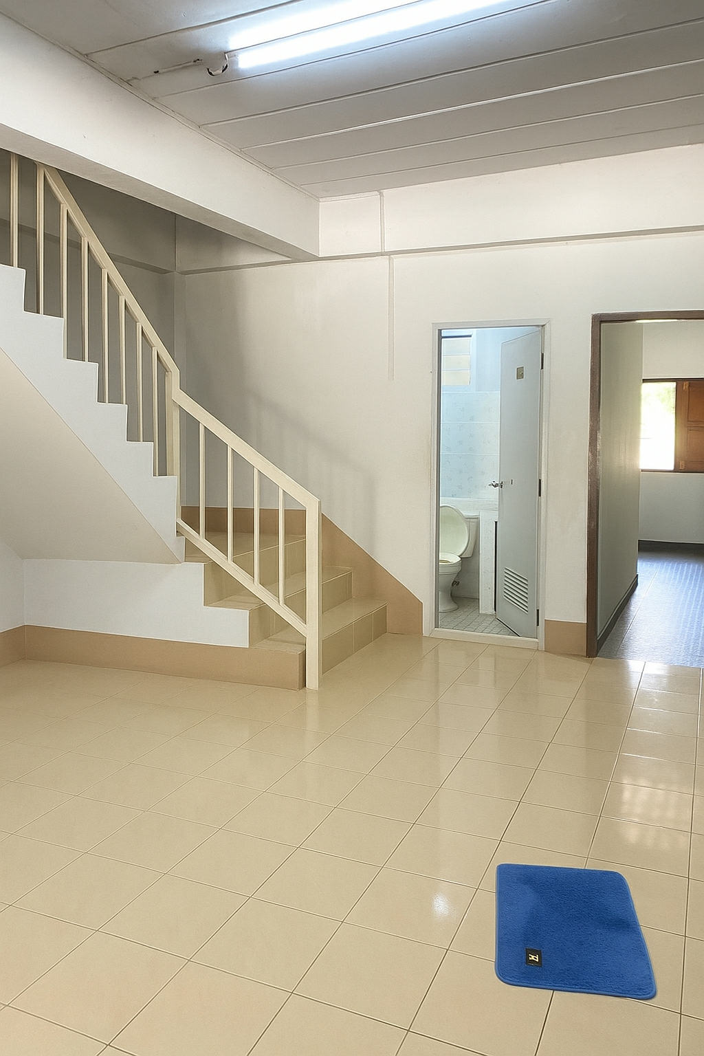 * พื้นชั้นล่างกระเบื้อง พื้นชั้นบนลามิเนต