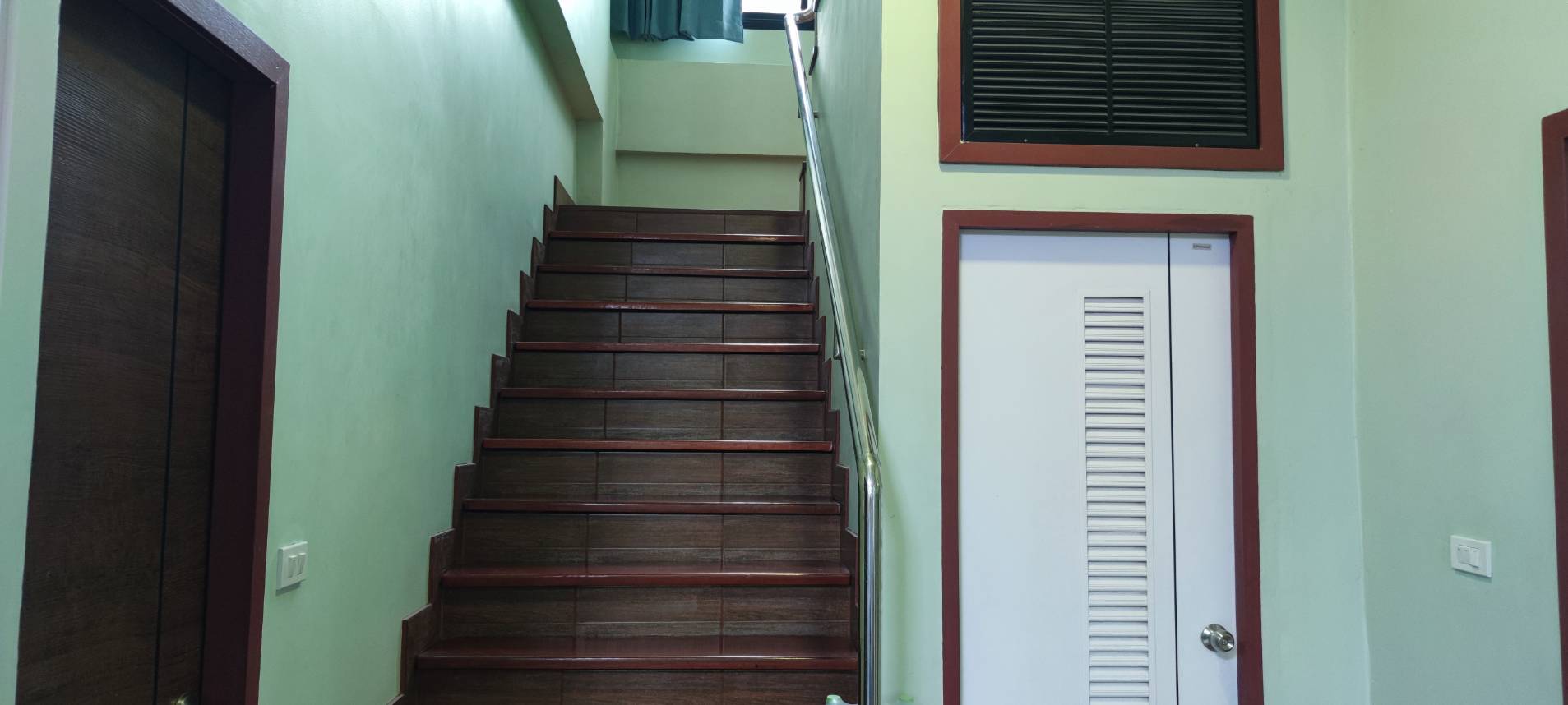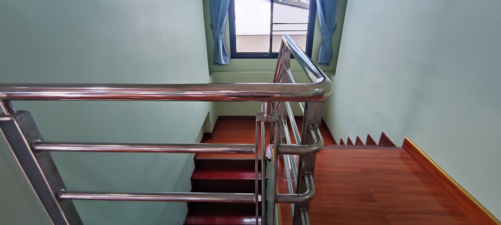 - บันได ขึ้นชั้น2 เป็นไม้ ราวบันไดสแตนเลส