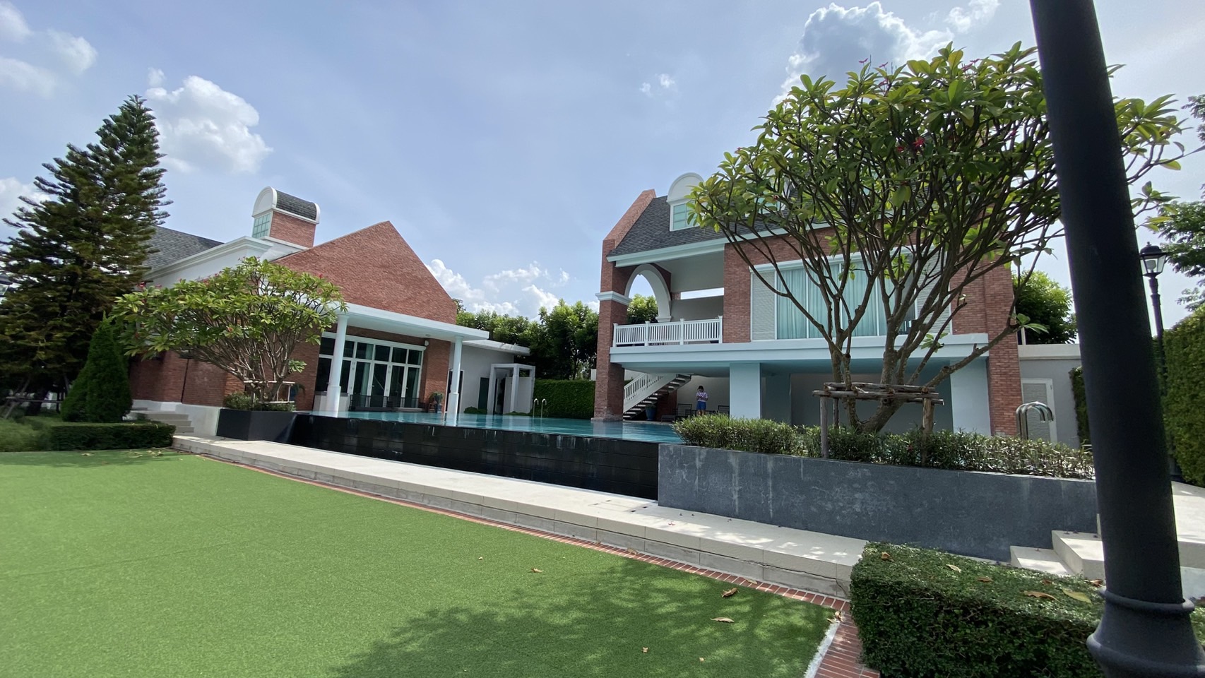 - ส่วนกลางมีสวนหย่อมขนาดใหญ่ ทะเลสาปขนาดใหญ่และสระว่ายน้ำกลางหมู่บ้าน