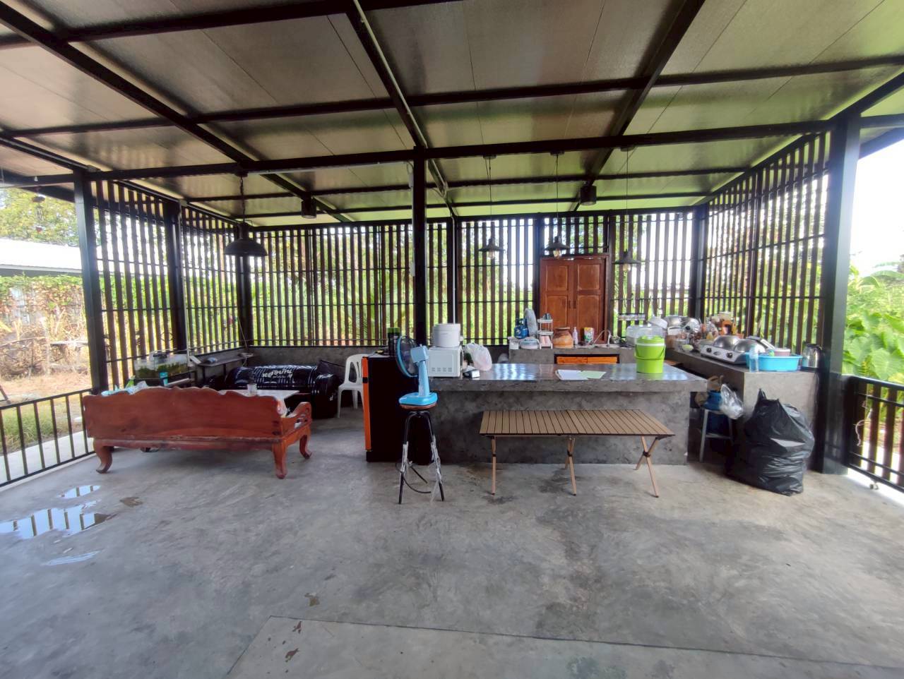 -บ้านเดี่ยว 1 ชั้น ขนาด 261.2 ตร.ว. หน้าบ้านหันไปทางทิศ “ตะวันตก” พร้อมงานต่อเติมโรงจอดรถ สามารถจอดได้ ถึง 3 คัน และมีครัวให้พร้อมทั้ง ครัวใน ครัวนอก มีพื้นที่นั่งภายนอกที่เป็นส่วนต่อเติมออกไป