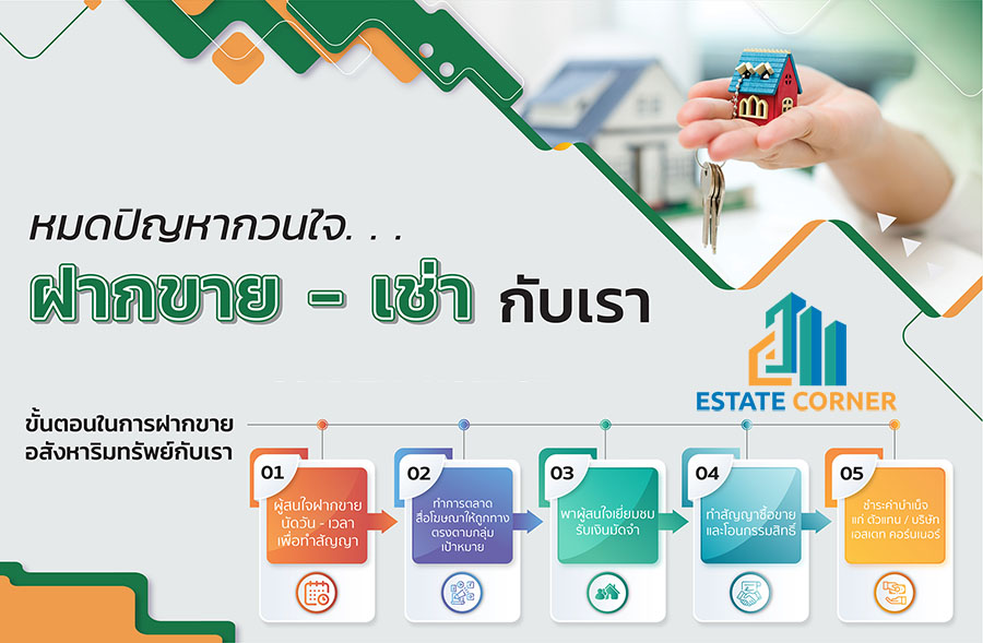 Estate Corner บริการ รับฝากขายบ้าน ฝากขายที่ดิน ฝากขายคอนโด ฝากขายอาคารพาณิชย์ ฝากขายอสังหาทุกประเภท ทั่วประเทศ ด้วยทีมนายหน้ามืออาชีพ